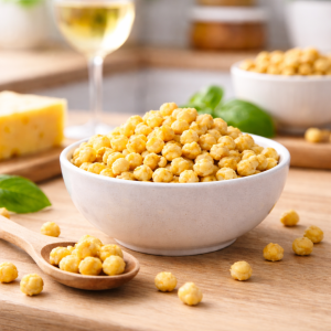Ciecierzyca dostarcza białka roślinnego i zapewnia uczucie sytości, a przyprawy nadają jej intensywny, lekko kremowy profil smakowy. Dzięki temu możesz sięgnąć po coś chrupiącego i wyrazistego — bez rezygnowania z bardziej świadomego wyboru.